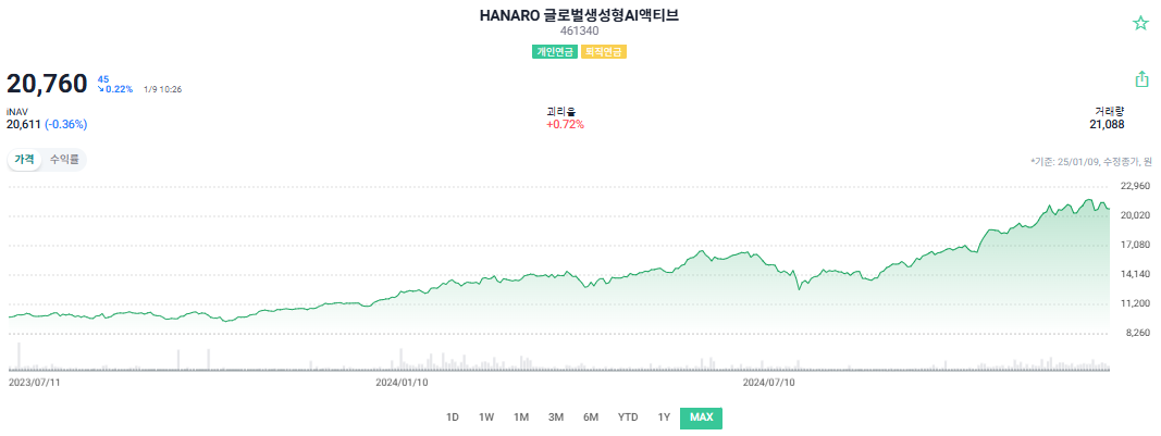 Hanaro 글로벌 생성형 AI 액티브 수익률 및 수수료