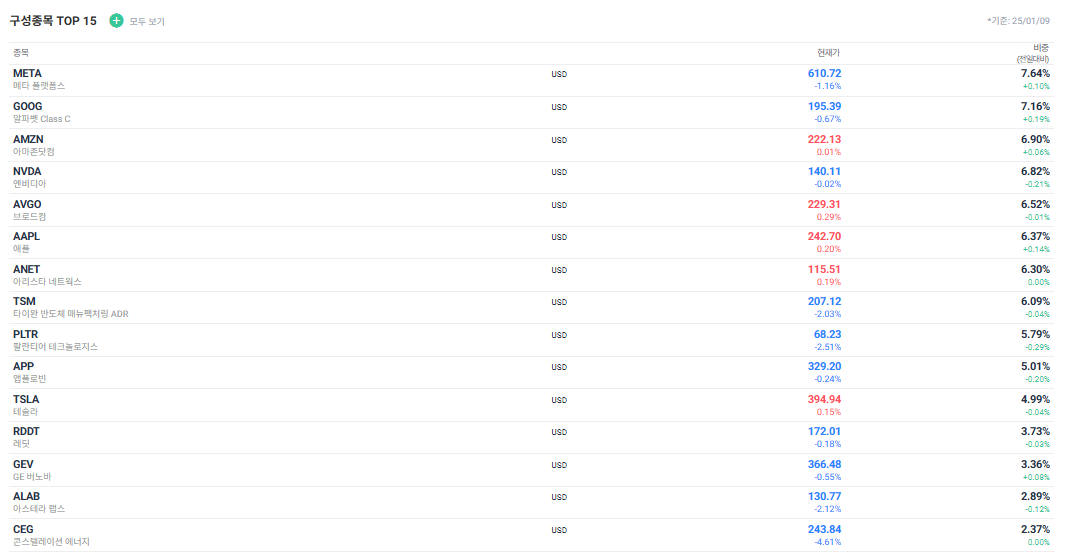 Hanaro 글로벌 생성형 AI 액티브 ETF의 주요 구성 종목은 아래와 같습니다.